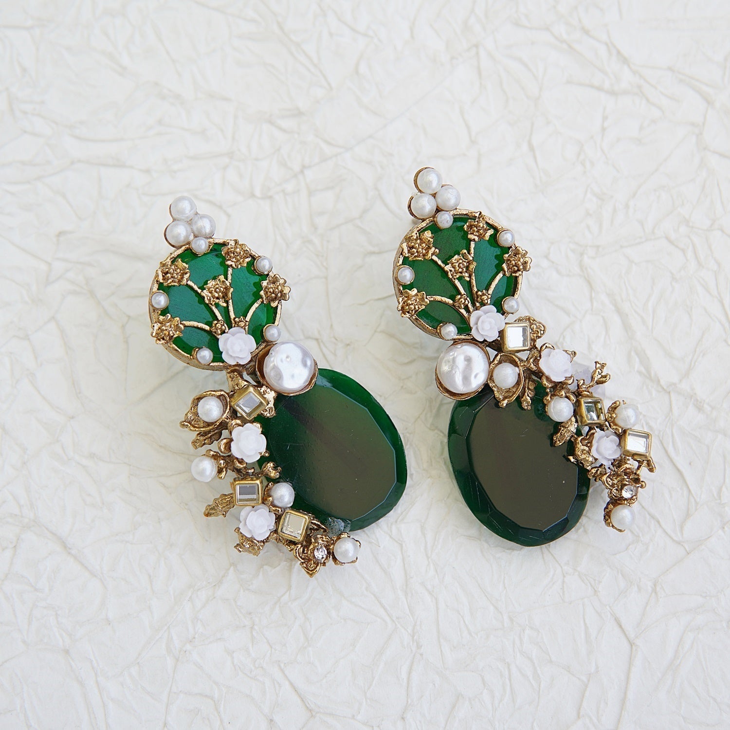 Introducing our Regal Bloom Opulence Earrings, hand-crafted with high quality gemstones and semi-precious gems, including mother pearl. These earrings radiate luxury and elegance, making them the perfect accessory for any occasion. Crafted with precision using copper-based materials, our earrings are a perfect addition to your collection.