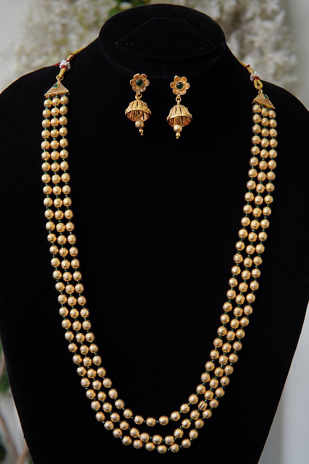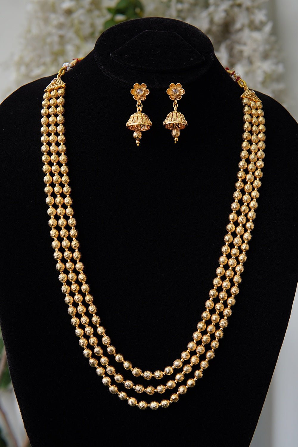 Elevate your traditional look with the Rajwadi Style 3 Layers Mala Set. Adorned with three beautifully beaded layers, this set exudes regal elegance. Perfect for weddings, festivals, and grand celebrations, it adds a touch of tradition to any ethnic outfit. Embrace the beauty of our culture with this mala set.