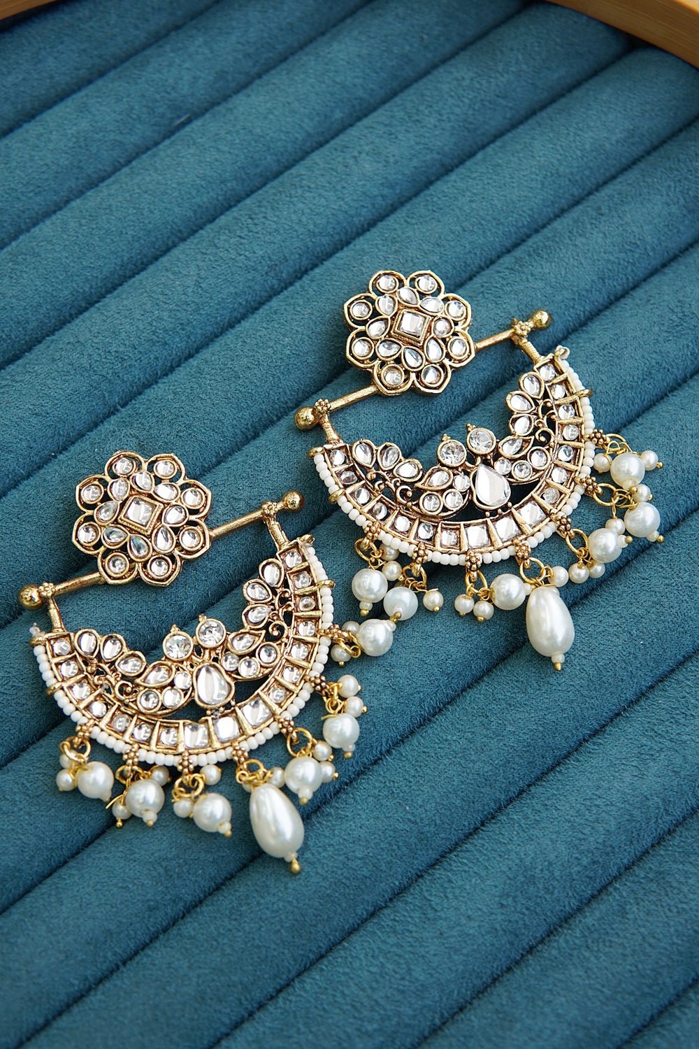Experience the timeless elegance of our Antique Kundan Madrasi Bali Earrings. Each piece is carefully crafted with antique gold plating and features semi-cut kundan for a touch of traditional charm. Elevate any outfit with these hand-crafted beauties.