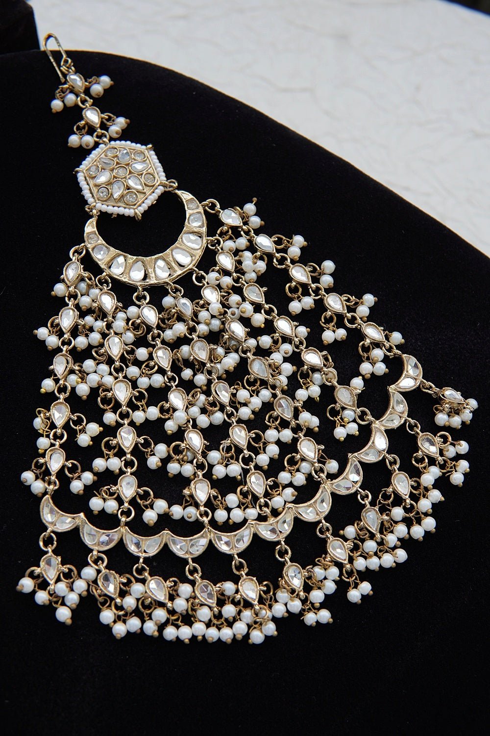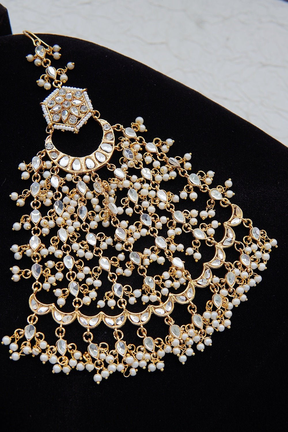 Elevate your bridal or festive look with the Classic Traditional Kundan Jhoomar. Expertly crafted with sparkling Kundan stones and intricate detailing, this elegant headpiece adds a touch of royal charm to any ensemble. Perfect for special occasions, it beautifully complements traditional attire, making you shine with timeless grace.