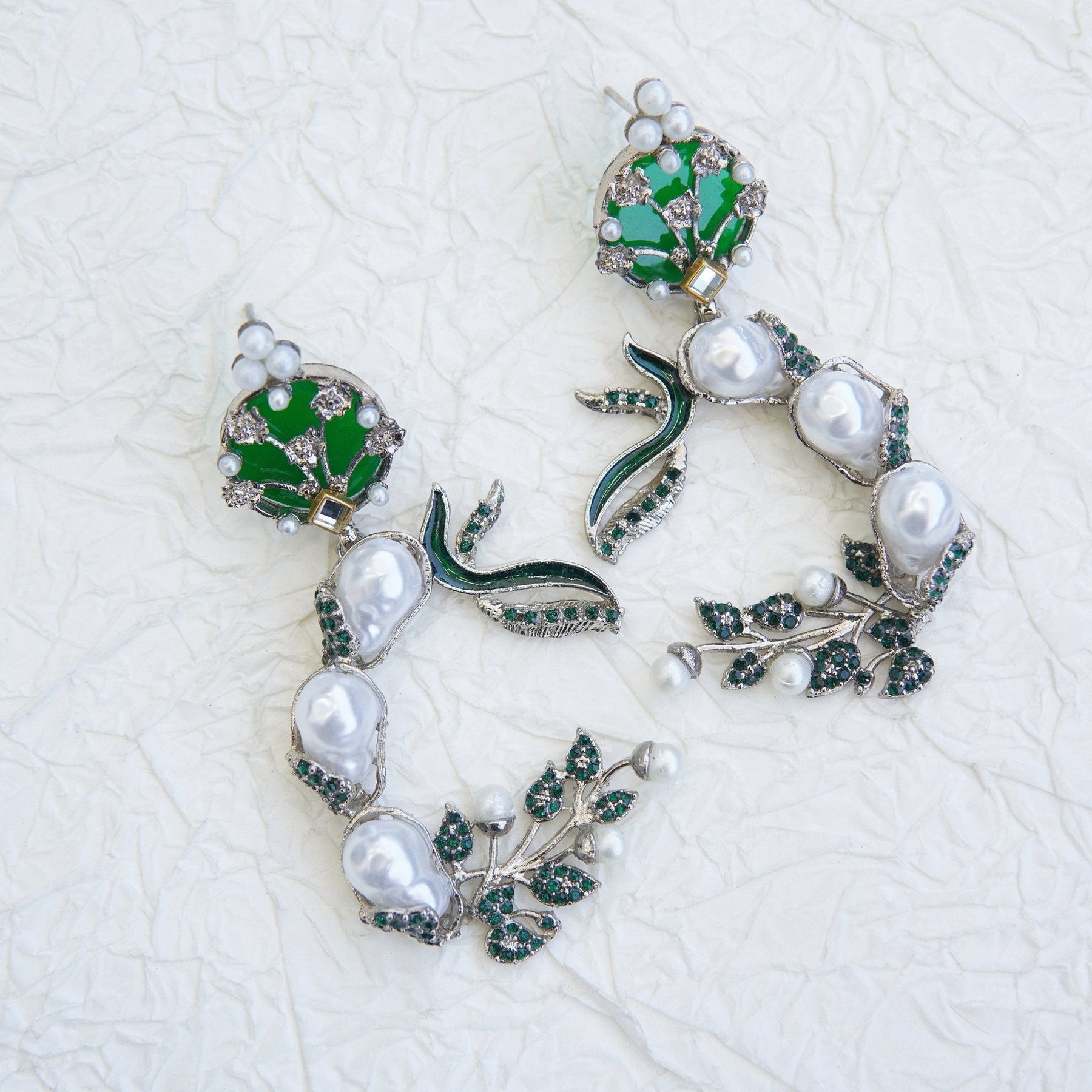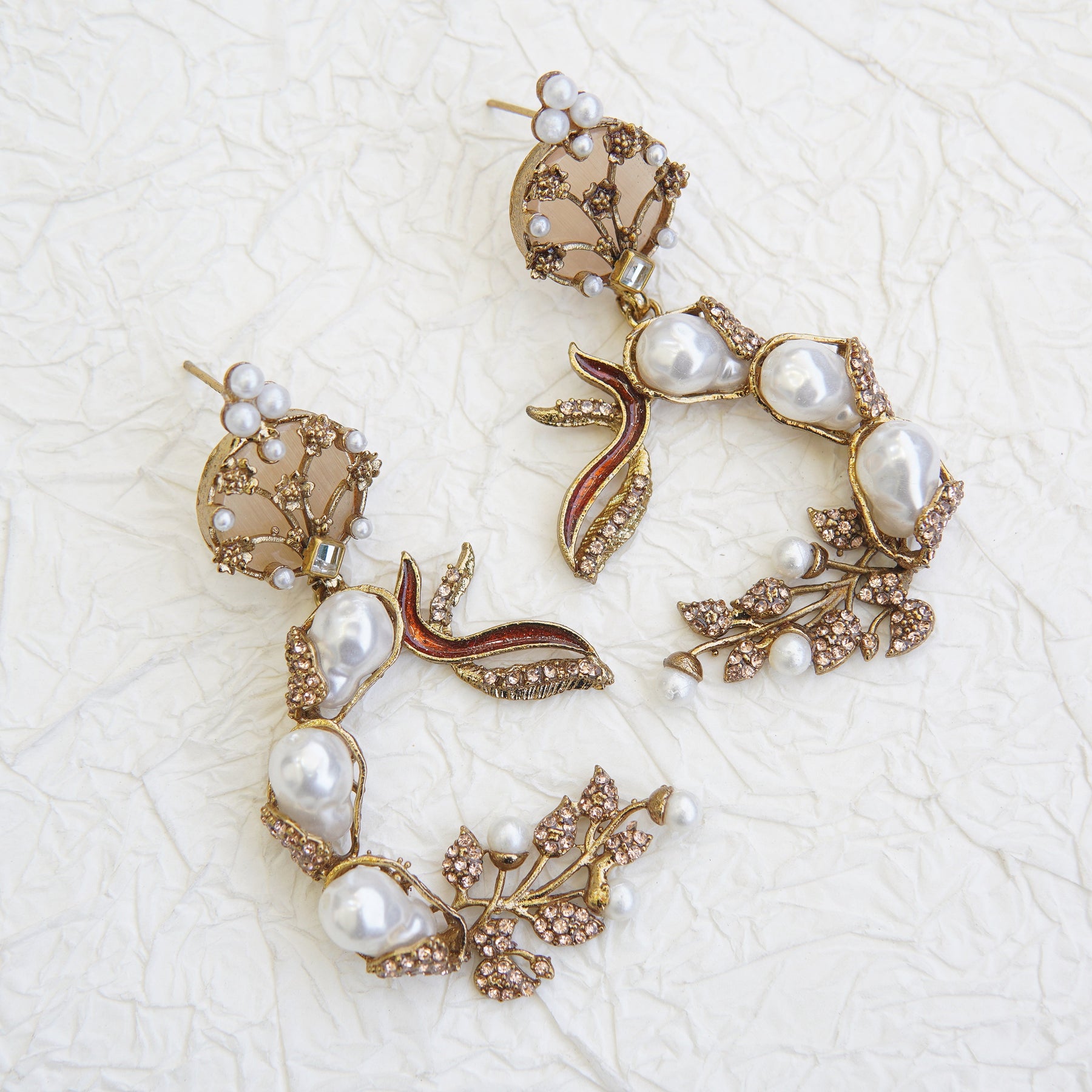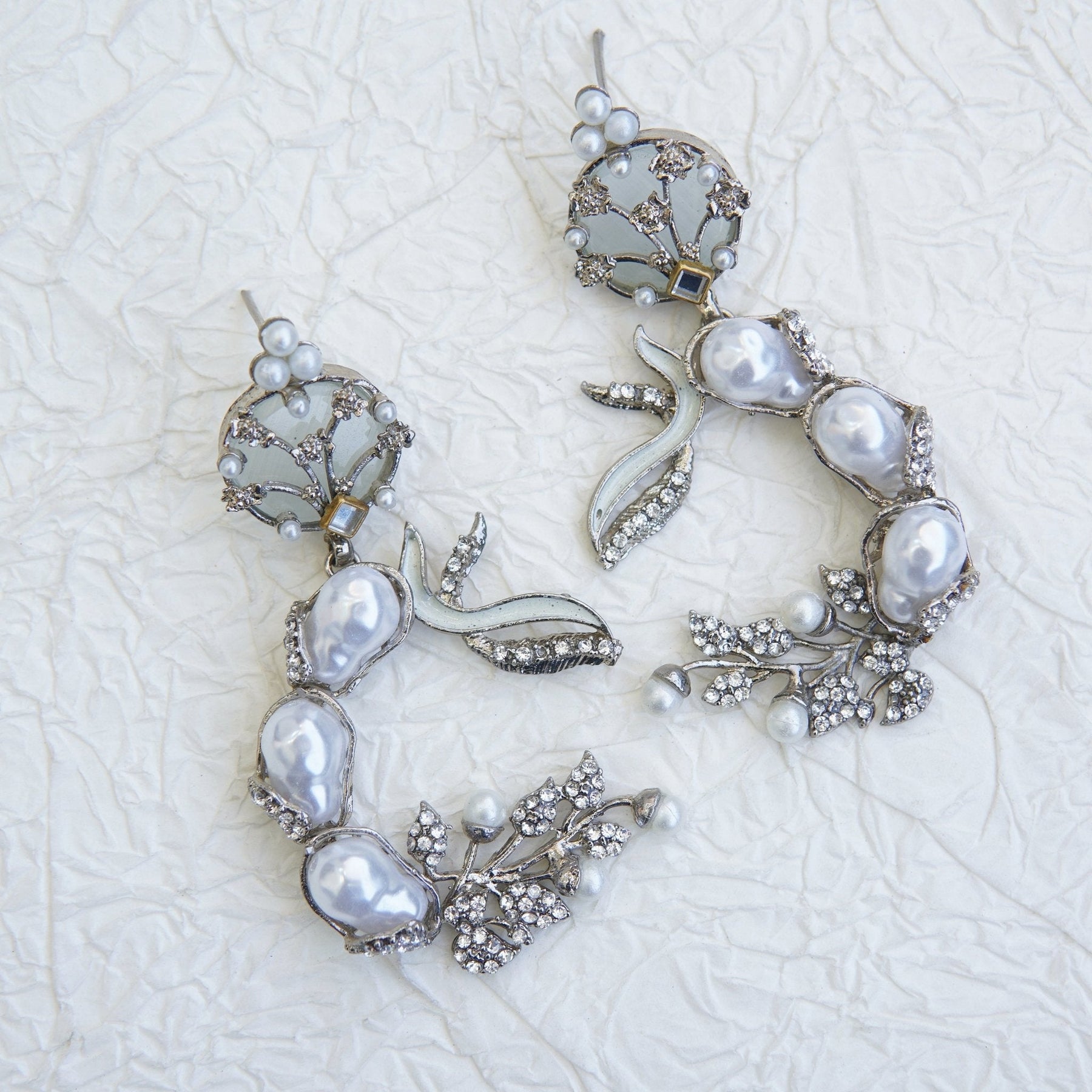 Enhance your style with the Mother Pearl Luxury Enchanted Vine Earrings. These exquisite earrings feature baroque pearls in a captivating vine design with delicate floral details, adding a touch of royal elegance to your look. Perfect for weddings and special occasions, these earrings make a statement of grace and sophistication.