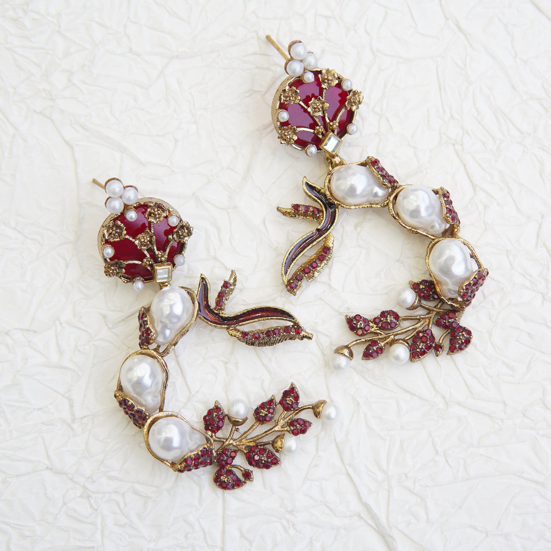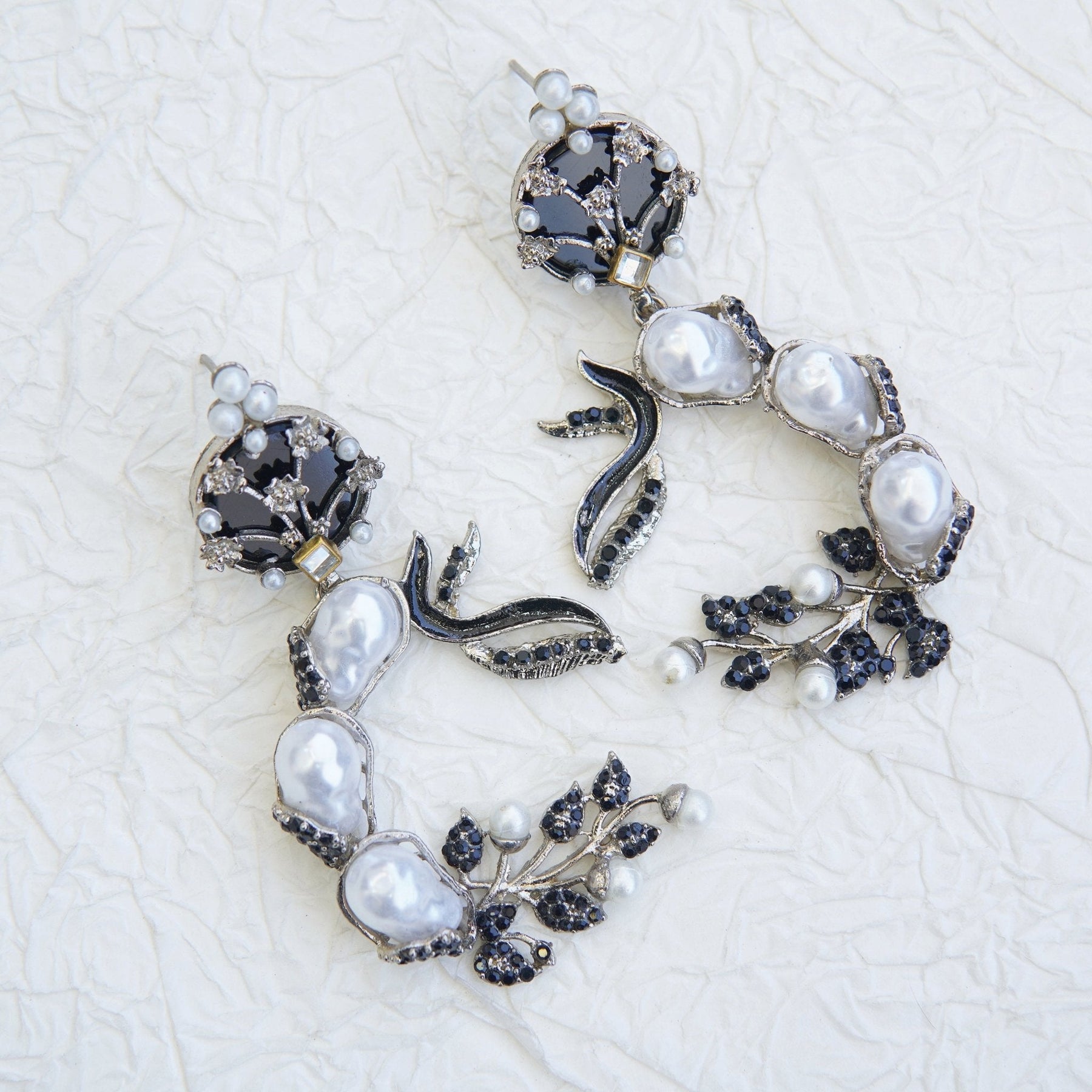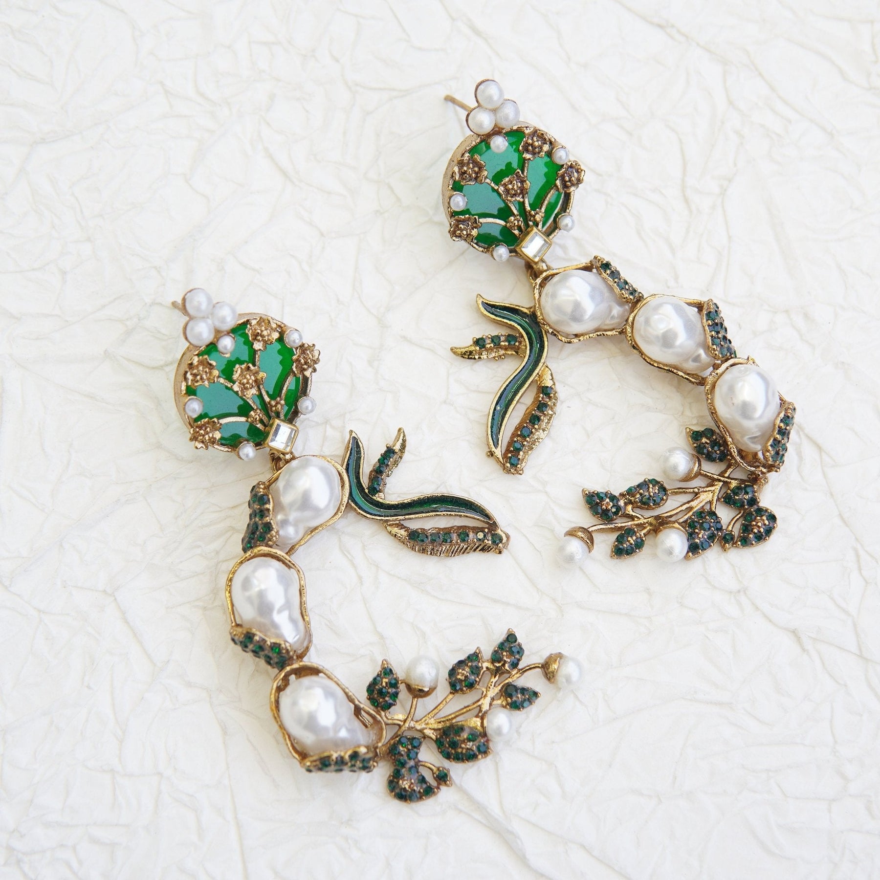 Enhance your style with the Mother Pearl Luxury Enchanted Vine Earrings. These exquisite earrings feature baroque pearls in a captivating vine design with delicate floral details, adding a touch of royal elegance to your look. Perfect for weddings and special occasions, these earrings make a statement of grace and sophistication.
